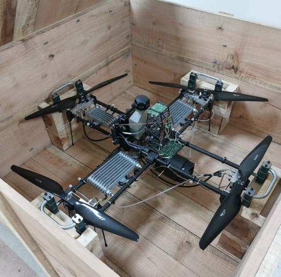 Puis, entre 2018 et 2025, ce projet est repensé pour respecter la réglementation française en vigueur qui impose un poids inférieur à 25kg pour les drones. Ses composants hydrauliques doivent être miniaturisés, se mutant en première mondiale. Enfin, le 31 juillet dernier, c’est l’aboutissement de cette décennie de recherches : le premier drone quadrirotor à propulsion hydraulique prend son envol.